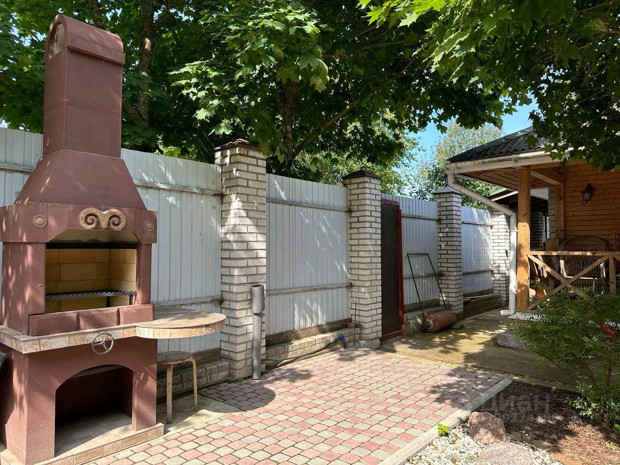Предоставленный мангал с дымоходом позволит приготовить блюда на гриле.