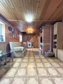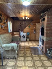 Помимо гостиной, в доме есть просторная кухня. Здесь установлена русская печь, которая является не только источником тепла, но и прекрасным местом для приготовления вкусных и сытных блюд.