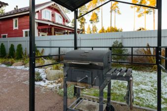Полностью оборудованная кухня - Кухонный гарнитур из массива, большой стол 2,6м*1м, посуда, холодильник, микроволновая печь, полноразмерная посудомоечная и стиральная машина, мангал-гриль-барбекю с принадлежностями, постельное белье, полотенца.