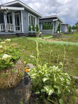 В деревне Кобона, на участке в 15 соток, сдаются одновременно три уютных домика-студии, с панорамными окнами, расположенных в шаговой доступности от Ладожского канала.