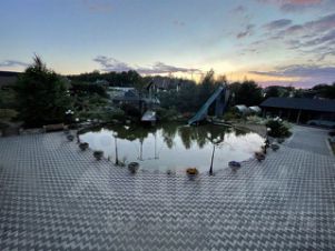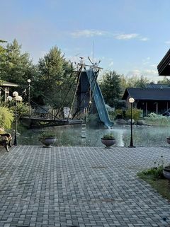 На территории дома есть беседка с мангалом для вашего отдыха на свежем воздухе и собственный пруд с горкой.