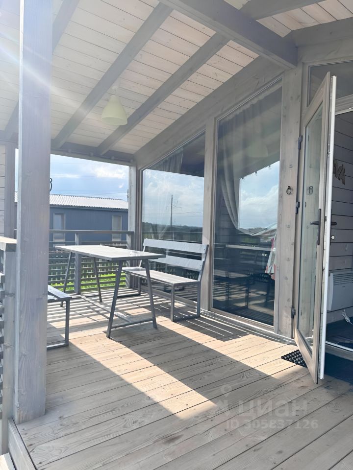 В доме кухня-гостиная с двуспальным диваном (размер 140*200) + 2 раздельные спальни с двуспальными кроватями (размер 140*200).