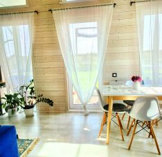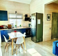 Наш комплекс состоит из комфортабельного Дома (65 м.кв), русской Бани (45 кв.м) и Купели. (дом бронируется при размещении до 6 чел, если 8 чел, то бронь дом+баня.