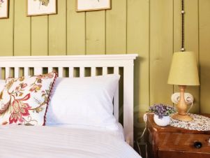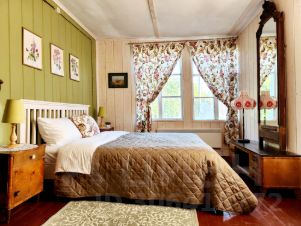 Вторая спальня с двуспальной кроватью на веранде (зеленый интерьер) открыта с апреля по ноябрь и предоставляется за доплату.