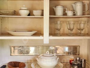 -кухня с инфракрасной плитой, СВЧ - печью, холодильником, вытяжкой, электрическим чайником, полным набором посуды для готовки и сервировки;