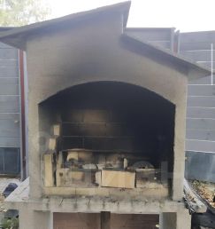 Участок окружен хвойными и декоративными деревьями, на территории есть мангал, парковка, детская площадка.