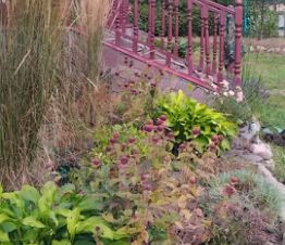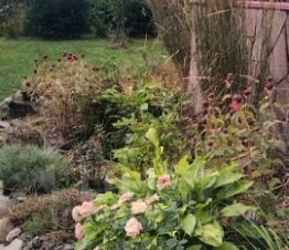 Цветы, яблоня, слива, смородина, крыжовник, голубика, малина, земляника, клубника, жимолость - все для вас. Рядом лес полон грибов.