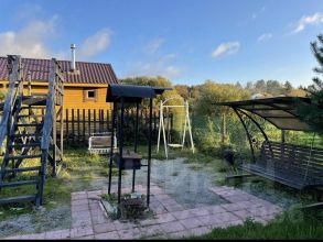 Участок, окружённый зеленью, включает хвойные деревья и ухоженный газон. Для активного отдыха на свежем воздухе здесь есть горка для катания на ватрушках, мангальная зона и игровая площадка для детей с качелями.
