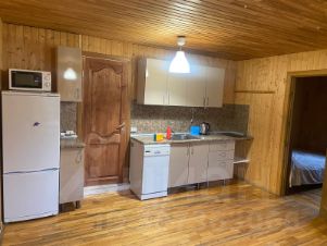 Коттедж оснащён просторной кухней-гостиной, двумя санузлами и уличной открытой террасой, где можно наслаждаться свежим воздухом и прекрасными видами. Для вашего удобства в доме есть всё необходимое: от бытовой техники (холодильник, стиральная машина, посудомойка) до посуды и постельного белья. Мы также предоставляем полотенца и бытовую химию, так что вам не о чем беспокоиться.
