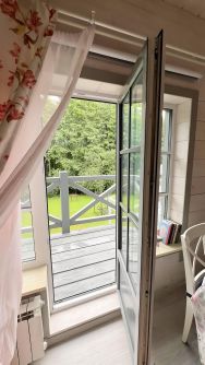 На территории участка есть гостевой дом, он сдаётся и находится в отдалении.