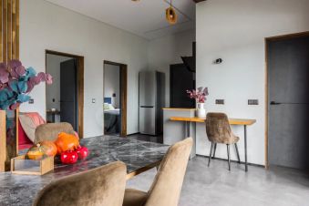 Коттедж 3 шестиместный: один этаж, 2 спальни, кухня-гостиная (везде ортопедические матрасы аскона), санузел. В коттедже есть все необходимое для комфортного проживания. На кухне - вся необходимая техника: плита, микроволновая печь, посудомоечная машина, чайник; посуда; обеденный стол на 6 персон, тв и мультимедиа. Территория благоустроена рулонным газоном, по которому можно ходить. На территории 6 коттеджей. У каждого дома своя мангальная и беседка. Общая парковка на 6 машин.