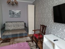 Кухня-столовая: Раскладной диван, холодильник, посудомоечная машина, телевизор, вся необходимая посуда.