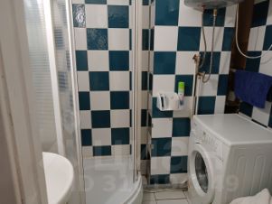 Санузел: Современный санузел с душевой кабиной, раковиной, унитазом и стиральной машинкой.