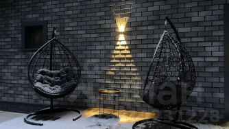 - Большая терраса с подвесными креслами и кофейным столиком.