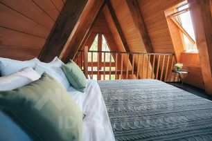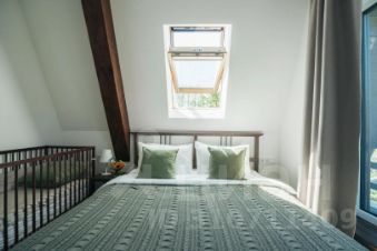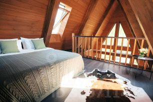 Две изолированные комнаты с двух-спальными кроватями и выходом на балкон. Ванная комната с душевой и мансардным окном. Зона отдыха.