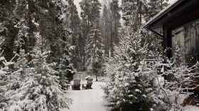 Просторная гостиная с панорамным видом на ели и сосны. Панорамная ванная комната, второй сан узел. Зона кухни.