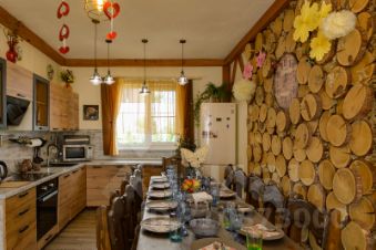 Баня из бревна в 5 метрах от дома с мощной электрокаменкой, бассейном с подсветками, большой комнатой отдыха в кантри стиле. Можно с вениками.