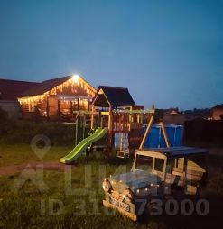 Детская площадка на территории нашего участка: горка, качели, лестницы.