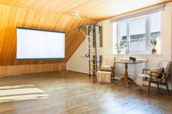 На втором этаже открытое пространство - 100м2 с двухспальным местом.