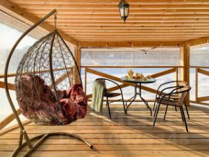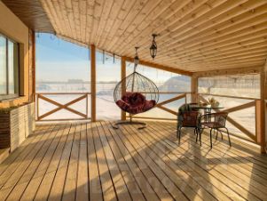 Если есть маленькие дети, то на террасе очень удобно их укладывать на дневной зимний сон - места достаточно для катания коляски по кругу.