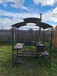 Мангальная зона: Большая беседка с обеденным столом для 12 гостей, трёхместные качели, мангал с печкой под казан. Комплект шампуров, 2 решётки, казан на 8 литров.