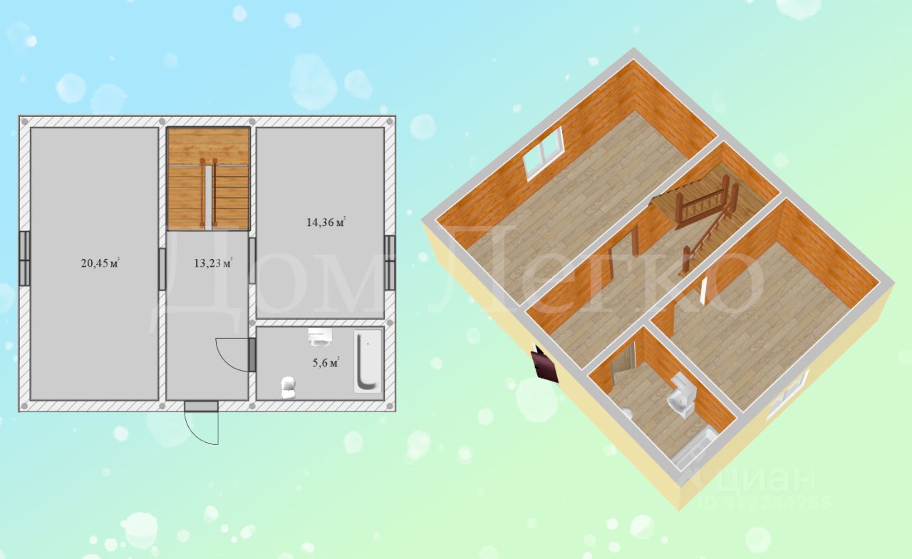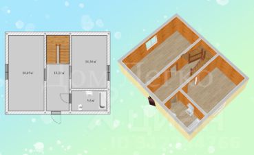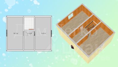 • Удобная планировка дома: 2 спальни, просторная гостиная, кухня, прихожая и санузел.