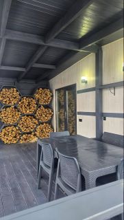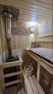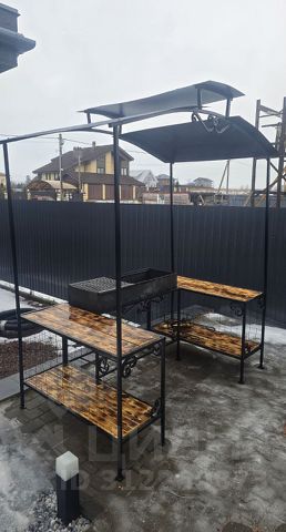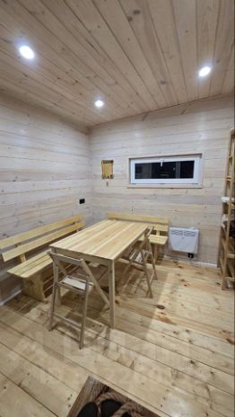 На участке находится полностью укомплектованная баня. Комната отдыха, душевая кабина. У бани есть веранда с уличной мебелью, рядом полноценный мангал с шампурами и решёткой.