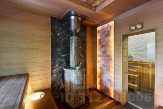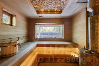 Большой банный комплекс с зоной барбекю, уличной мебелью на террасе, купелью, нефритовой печью и панном из гималайской соли. В парной панорамное окно