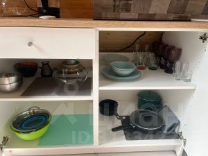 - Мини-кухня (обеденный стол и стулья, холодильник, микроволновая печь, набор посуды/утварь для приготовления еды и красивой сервировки стола, электрический чайник, индукционная плита, средства для мытья посуды, губки, кухонные полотенца);