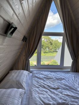 На втором этаже 2 комнаты: с двуспальной и 2 односпальными кроватями с ортопедическими матрасами для комфортного и спокойного сна.