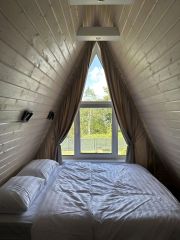 @Cosmos. Krasnoe_ ozero — это 4 дома в стиле A-Frame на самом берегу Красного озера, где каждый дом сочетает в себе уют и всё необходимое для вашего комфорта.
