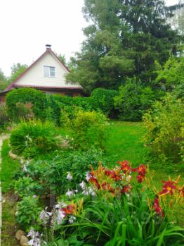 Дом расположен на просторной территории 15 соток в отдалении от дома хозяев, отдельный въезд, своя парковка, придомовая территория, забор.