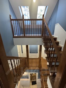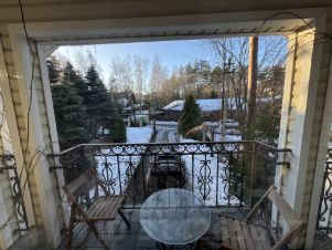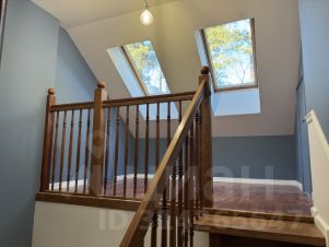 Дом 3-этажный. На первом этаже расположены просторная кухня и гостиная с камином. На втором этаже-2 спальни с балконами и раздельные санузлы. На 3 этаже 2 мансардные спальни и гардеробная. На 3,5 этаже есть 2 больших кладовых помещения. На цокольном этаже находится гараж с металлическими стеллажами, котельная.