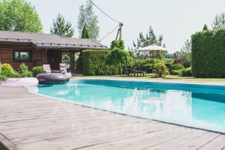 Небольшая уличная терраса, бассейн сезонный открытый с подогревом 4-10 м, работает с мая по октябрь, поле с искусственным покрытием для мини