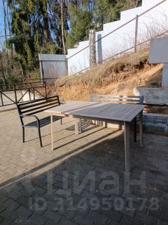 Мангал и сетка для гриля для приготовления блюд на открытом огне. Мебель на террасе, шезлонги.