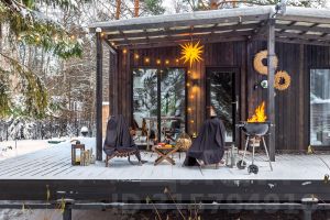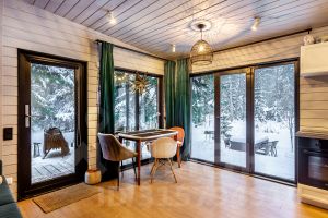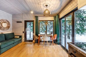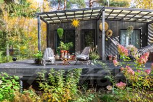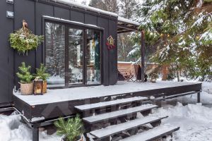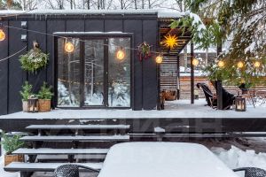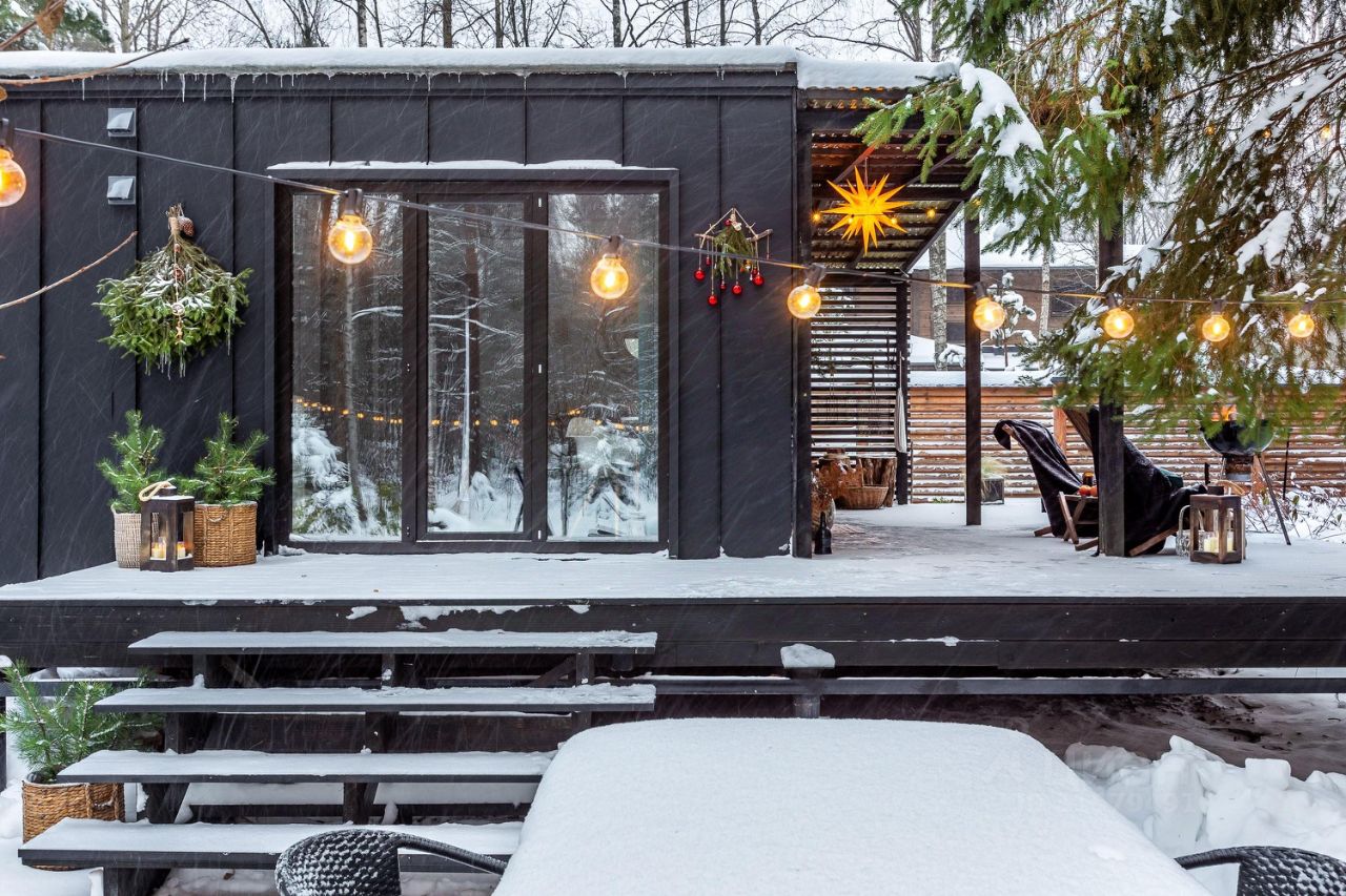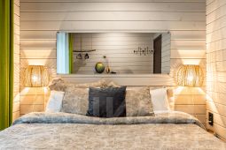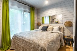 В доме 2 небольших спальни (в одной кровать, в другой удобный раскладывающийся диван), кухня-гостиная, полноценный санузел (в галерее можно найти планировку домика). Максимальное количество гостей - 4 человека.