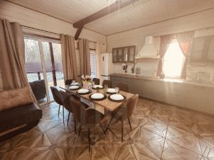 Дом оснащен всем необходимым для комфортной отдыха: в нем есть телевизоры, холодильник, фильтры для воды, а также электрическое отопление(радиаторы в каждой комнате), это обеспечит вам тепло и уют по вечерам. Внутри вас ждет камин, который станет центром притяжения для всей семьи, создавая атмосферу уюта и тепла, так же в доме баня на дровах(большая парная и помывочная на два душа), где вы сможете расслабиться и восстановить силы после трудовой неделе. Участок граничит с живописным лесным массивом и находится в непосредственной близости от озера, что делает это место идеальным для любителей природы и рыбалки.