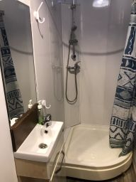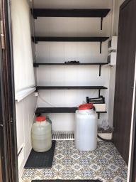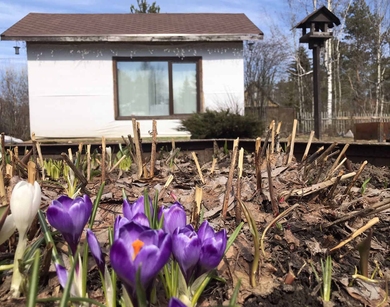 с начала октября по май: на участке нет источника воды. При заселении я заполняю бак, но далее за водой нужно на колодец. Это дает все удобства: горячую воду, душ и туалет.   С мая по октябрь центральное водоснабжение.