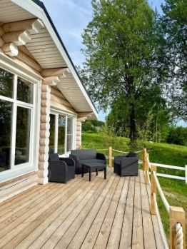 В доме 2 раздельные спальни плюс дополнительный раздвижной диван. В гостиной камин, который вечерами придаёт дому особый уют. Терраса с панорамным видом, мангальная зона. Решётки и шампура предоставляются. Настольные игры, книги, wi-fi, smart tv.