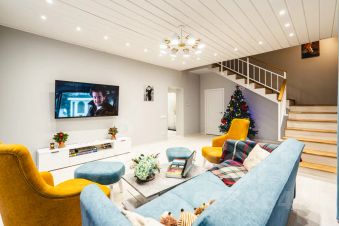 Просторная гостиная с тв 4к 65 диагонали. Кухня укомплектована посудой на 10 перс, газовая варочная поверхность, посудомойка, свч, духовой шкаф, вся бытовая техника kuppersberg, встроеный холодильник liebherr, капсульная кофемашина, чайник, кастрюли, сковородки, вилки, ножи, ложки. Тв 4к 55 диагонали, сан. Уз. Спальня с двуспальной кроватью 160-200.