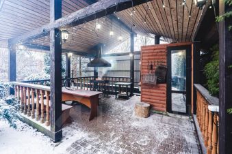 Небольшая уличная терраса, бассейн сезонный открытый с подогревом 4-10 м, работает с мая по октябрь, поле с искусственным покрытием для мини-футбола 10-15 м. Костровая зона. Отдельная крытая мангальная зона.