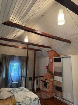 На втором этаже большая спальня 24 м2 с антресолью, небольшой нишей и двумя кладовыми. В спальне собственная печь. Из спальни выход на широкий и одновременно невероятно уютный балкон 11 м2 с освещением и электрическими розетками.