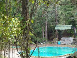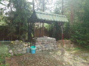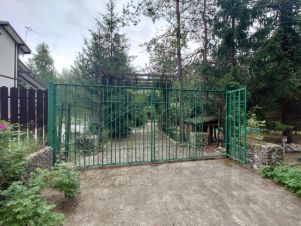 Вторая часть участка, более открытая, динамичная, со всех сторон окружена лесом, фактически является его частью. На этой части участка расположен небольшой декоративный пруд и спортивная площадка с баскетбольным кольцом. Имеется калитка в лес.