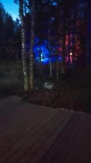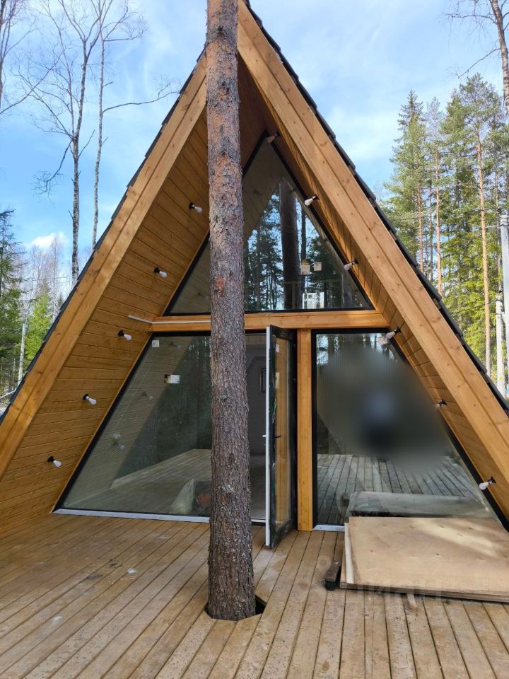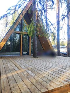 Дом Афрейм с мансардой, с большой верандой, вид на лес, до озера Воякоярви 3мин, с пляжем и детской площадкой, и чистым воздухом. Вечером у дома включается красивая подсветка и разноцветная подсветка в лесу.