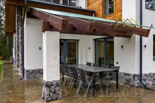 А так же шикарная прихожая встречает вас и переходит в уютную и просторную гостиную с камином и вторым светом с выходом на просторную террасу, где можно насладиться сведем воздухом сидя за большим обеденным столом на 10 персон.