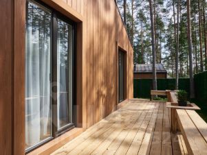 Новый, современный комплекс гостевых домов, 75 кв.м. + терраса 20 кв.м, на ландшафтном участке в окружении соснового леса в посёлке Пески, Лен.обл., Полянского сельского поселения, Выборгского района, расположенном в охраняемой зоне, вблизи Финского залива До Финского залива с красивым пляжем 15мин. пешком