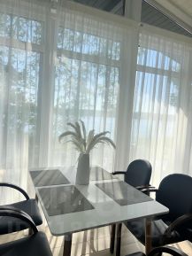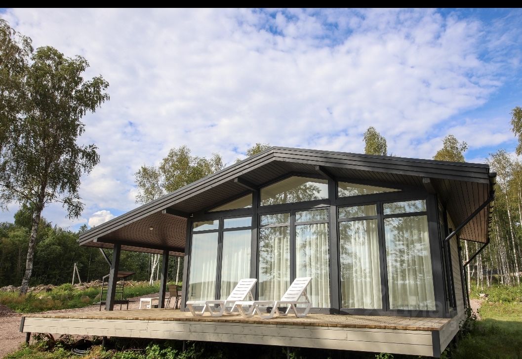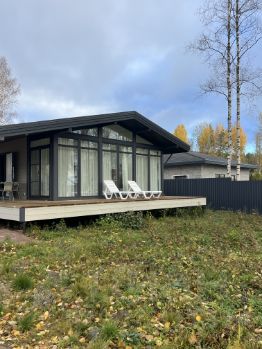 Просторная кухня-гостиная с панорамными окнами открывает вид на озеро , а мягкий диван приглашает вас расслабиться после прогулки. На кухне есть всё необходимое, что позволяет готовить вкусные блюда. В доме две уютные спальни, каждая из которых оформлена в уникальном стиле. Большие окна наполняют комнаты светом и открывают вид на природу . В каждой спальне есть удобная кровать и шкаф для хранения вещей .
