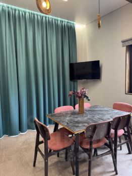 6местный: 1 этаж, 2 спальни, кухня-гостиная, санузел. В коттедже есть все необходимое для комфортного проживания: две спальни с двуспальной кроватью, кухня гостиная с раскладными диваном. На кухне: вся необходимая техника: плита, чайник; посуда; обеденный стол на 6 персон, ТВ и мультимедиа, Wi-Fi на всей территории. Вблизи есть Баня за доп. оплату. Инфраструктура: На территории 6 коттеджей. На территории есть пруд, мангальные, парковка на 10 машин. Лес у участка, Озеро Красное в 5 минутах ходьбы. Хорошее транспортное сообщение с СПб: автобусы от Парнаса и Девяткино. В посёлке 2 магазина. Много вариантов развлечения в любой сезон: На расстоянии 1 км 3 горнолыжных курорта: Красное Озеро, Снежный, Золотая долина с работающей круглогодичной инфраструктурой: спа, спуски лыжные, каток, велосипедные тропы, рампа, рестораны, кафе, веревочный город.