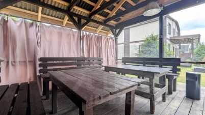 Глухой забор по периметру,видеонаблюдение ,wi-fi, большая гостиная ,тёплые полы, телевизоры, холодильник ,гардеробная,посудомоечная машина, варочная панель, духовой шкаф , микроволновка ,посуда(на 20человек)стиральная машинка, 2 санузла, душевая комната, фен,