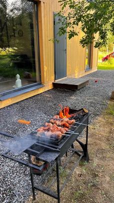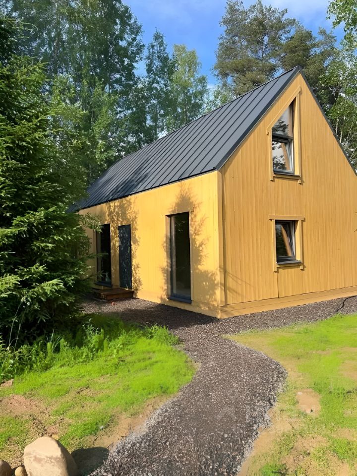 Домик расположен на границе с лесом, рядом есть ручей и лесная экотропа, по которой можно прогуляться и насладиться природой, свежим воздухом и пением птиц.